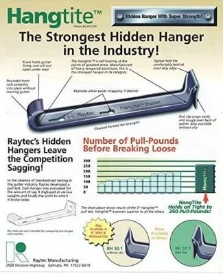 Our standard internal gutter brackets / hangers are Raytec Hangtite Hidden Hangers, the strongest hidden hangers in the industry.