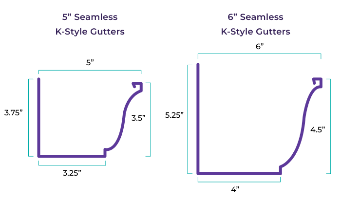 Available in 5, and 6 inch profiles, K style gutters are by far the most popular gutters for installation due to their strong profile and ability to carry high volumes of water away from the house quickly and efficiently.